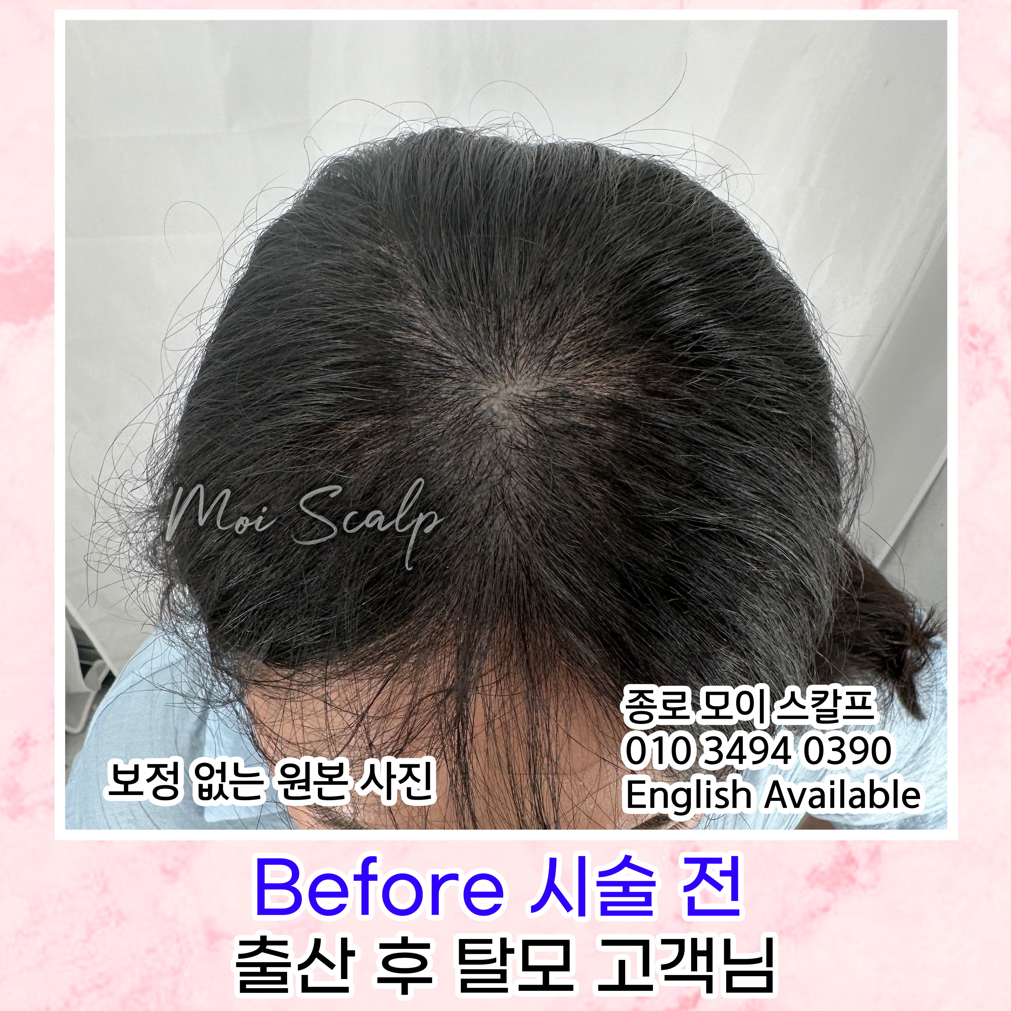 고객님 같은 경우, 출산 후에 머리가 빠진 후에 - 본인이 느끼기에 - 빠진 만큼 다시 머리가 나지 않아서 의뢰를 주신 경우입니다.